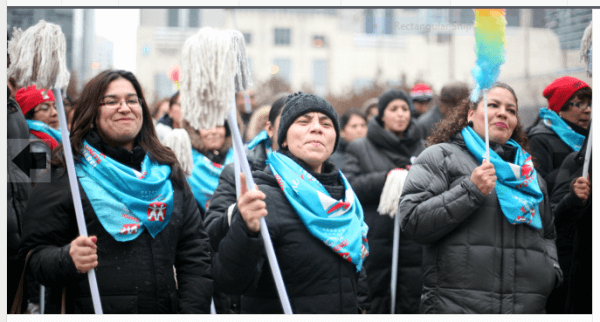 Union women, too, can demand that their organizations lead the nation’s response on sexual harassment; after all, more than half of the nation’s union members will soon be women. The hotel workers union in Chicago found that well over half of hotel workers reported harassment from guests; their #handsoffpantson campaign demands that management equip hotel maids with panic buttons and ban guests who sexually harass a worker. After many female janitors in California found themselves alone at night in empty buildings alongside abusive male managers, the United Service Workers West won contract language and a law requiring cleaning and security employers to offer training on sexual harassment.