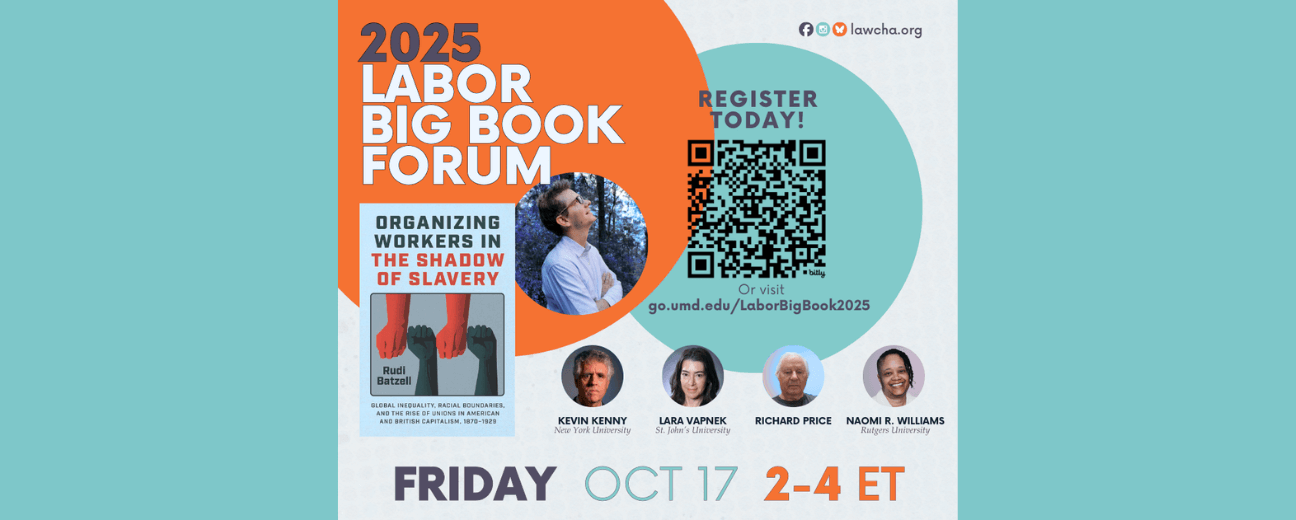 On October 17, historian Rudi Batzell presented at the Labor 2025 Big Book forum about his new book, Organizing Workers in the Shadow of Slavery: Global Inequality, Racial Boundaries and the Rise of Unions in American and British Capitalism, 1870-1929 (2025). Julie Greene moderated the forum. Comments were provided by Lara Vapnek (St. John’s University), Kevin Kenny (New York University), Richard Price (University of Maryland), and Naomi R Williams (Rutgers).