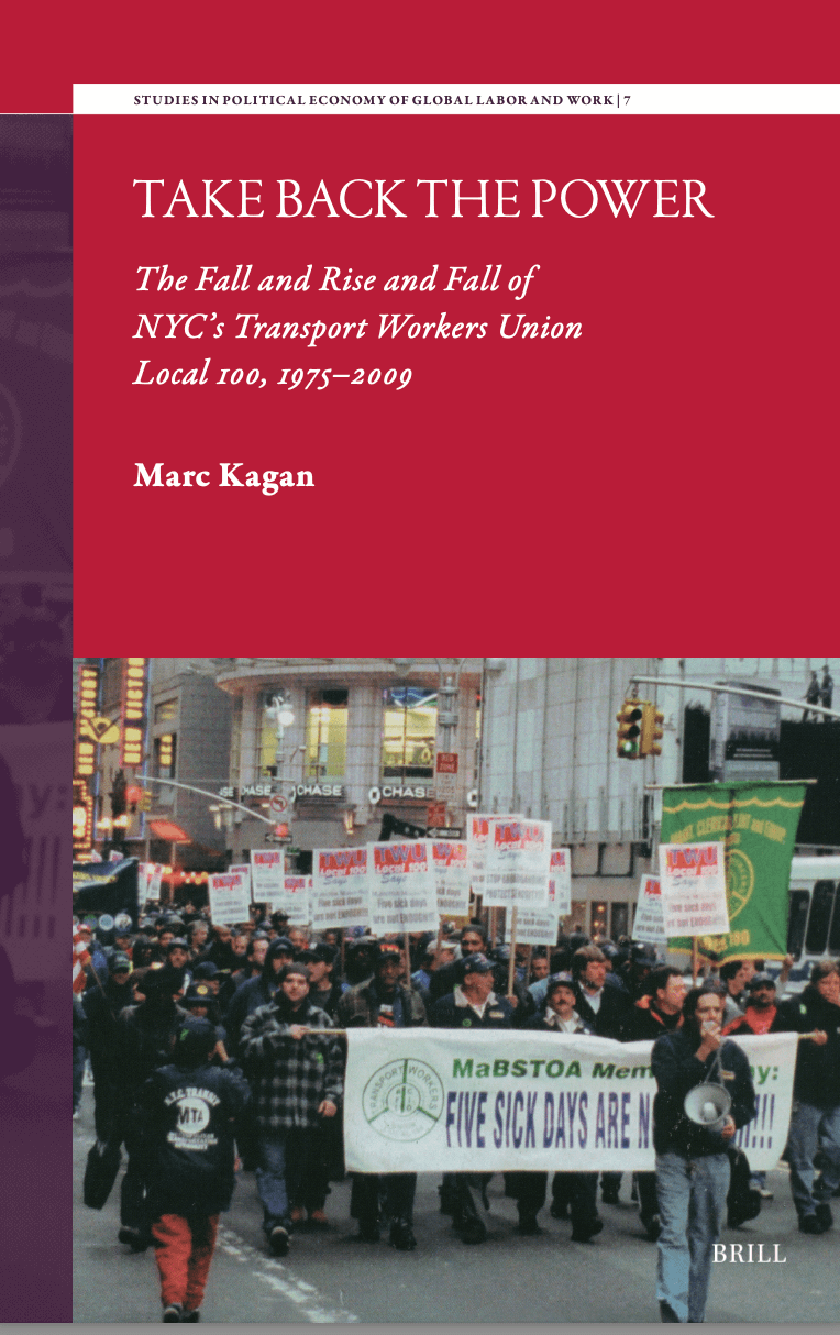 Take Back the Power: The Fall and Rise and Fall of NYC’s Transport Workers Union Local 100, 1975-2009 by Marc Kagan (Boston MA: Brill, 2025). Available for free download at https://brill.com/display/title/73488.